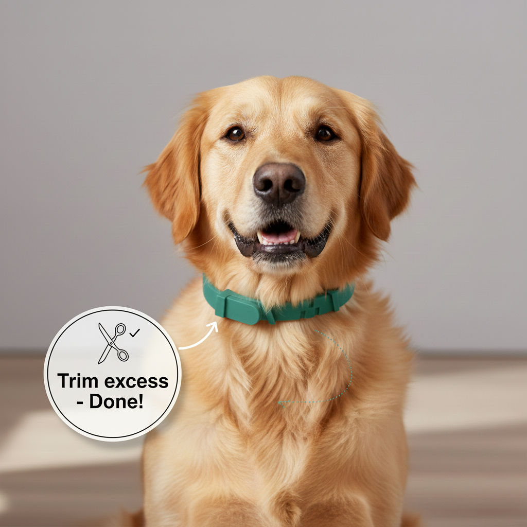 Step 3: Trim & Secure Cut off any excess collar length with scissors and secure the buckle. That's it! Your dog is now protected for the next 8 months.